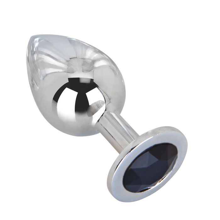 Гладкий большой плаг из отполированной до блеска стали с кристаллом иссиня-черного цвета в основании. Металл - материал с большой теплопроводностью, сначала он будет прохладным, но быстро нагреется до температуры вашего тела. Стальные игрушки можно нагревать или охлаждать с помощью воды.